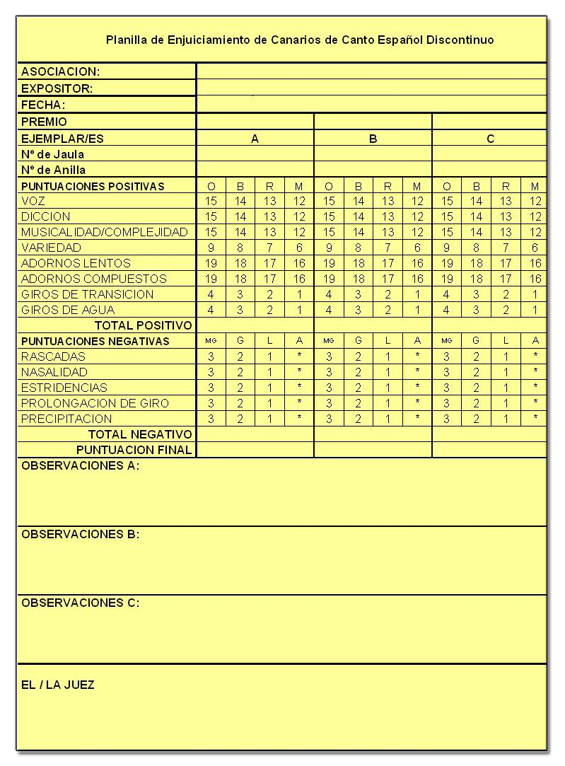 Realizado por la Comisión Técnica de Canto Español Discontinuo de la Confederación Ornitológica Española (COE)