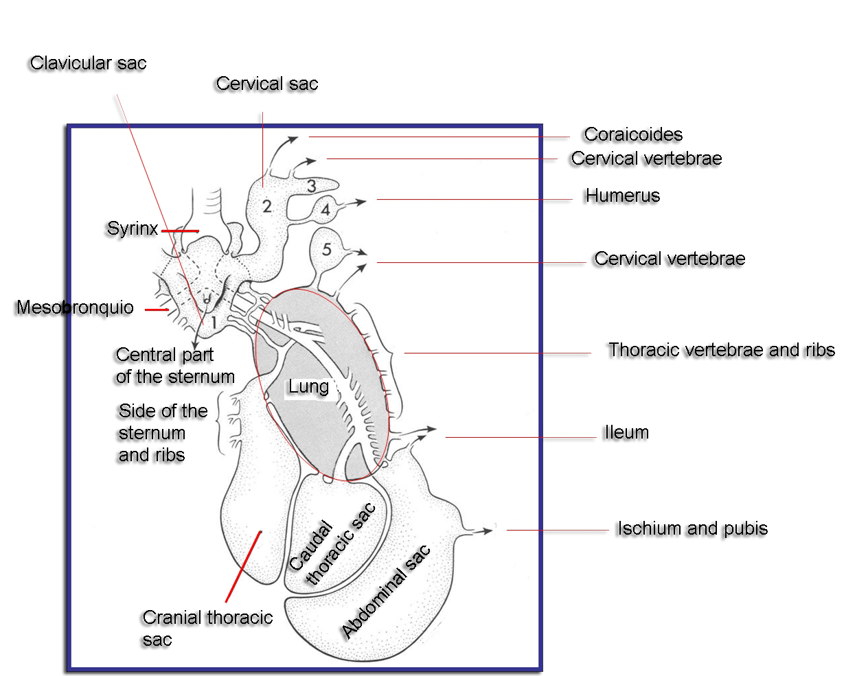 RELATIONSHIP OF THE AIR SACS OF THE SERINUS CANARIUS WITH PNEUMATIC BONES THE SYRINX